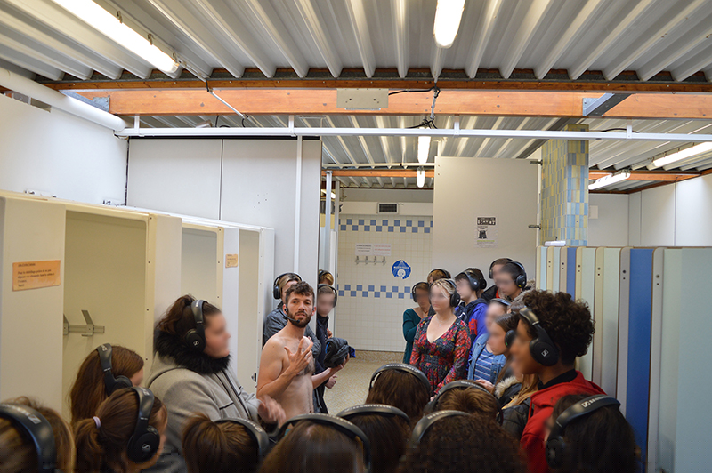 Il ne parle plus, mais sa voix intérieure se prolonge par un chuchotement dans le casque pendant qu’il enfile sa combinaison dans des gestes mesurés :